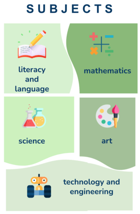 Students used their knowledge in practice. They do science experiments and learn technology by building and constructing.